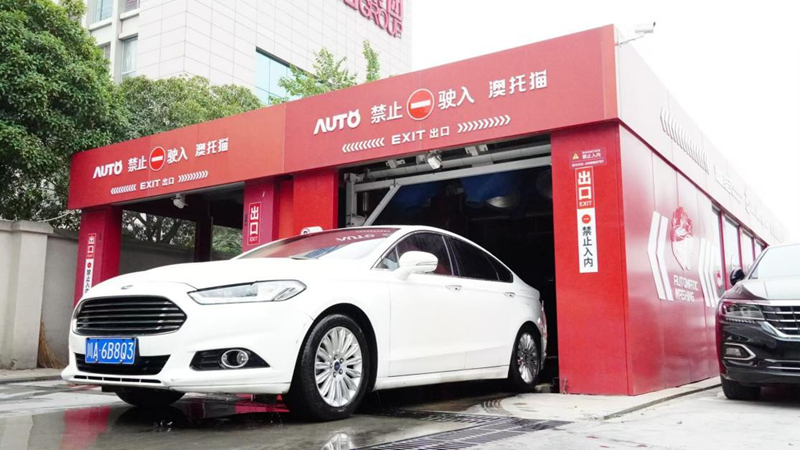 对准自动洗车区域入口,熄火、挂空挡,爱车顺着自动传送带缓缓驶入,巨大的自动抹布配合水流旋转清洗,一首歌还没听完,车辆完成了自动清洗,焕然一新。