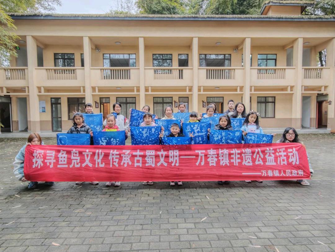 其中,在探寻鱼凫文化、传承古蜀文明的道路上,万春镇不忘初心,积极举办非遗公益活动。活动中,孩子们深入了解了鱼凫文化的历史渊源和独特魅力,并通过蜡染非遗技艺,亲手制作了代表鱼凫文化的作品。这些作品不仅展示了孩子们的创造力,更传递了对传统文化的热爱和传承。