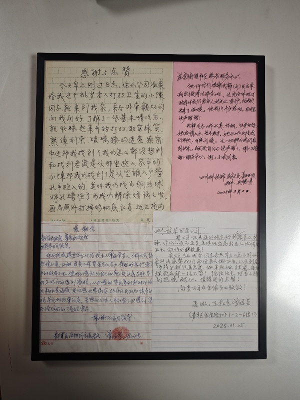 “我和老伴,一个92岁,一个91岁,都患有多种疾病,没法做卫生,非常感谢你们派的苟瑞珍工作人员来帮我们做清洁卫生,做得非常干净。”“你们的服务,真正体现了党和政府对我们老人的关心和关爱,让我们老人非常感动。”“你们派来的工作人员小陈太贴心了,还帮我堵住了老鼠洞,解决了大麻烦。”……在草堂街道为老服务中心有多封老人亲笔写的感谢信,每封信都情真意切,发自肺腑的表达老人的感动与感谢。